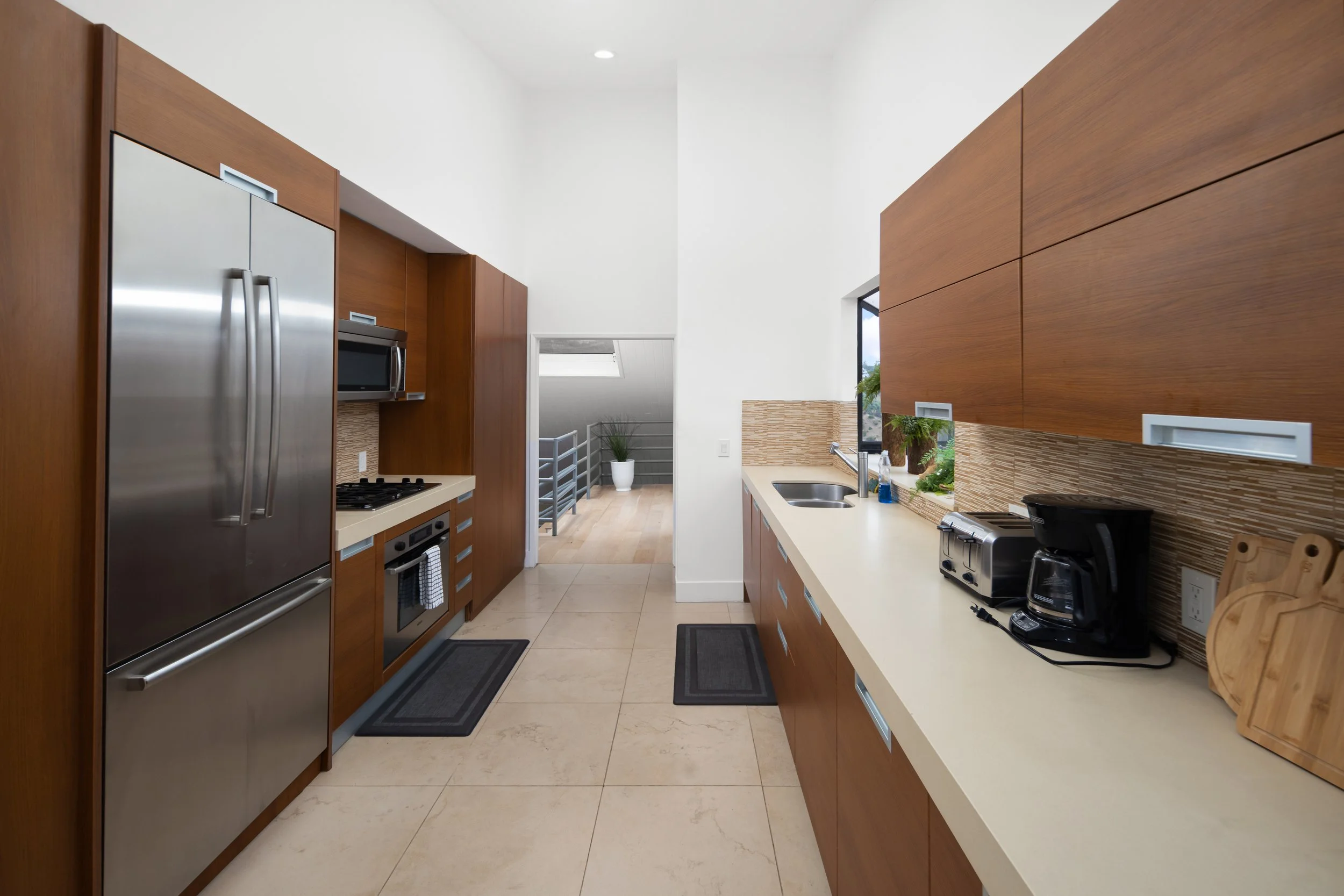 The hip contemporary design offers stunning canyon and city views, creating a trendy and modern atmosphere. Our newer sunny designer kitchen boasts stainless steel appliances, limestone floors, and a large pantry for your culinary needs. To make your stay even more convenient, we've equipped the property with two kitchens.